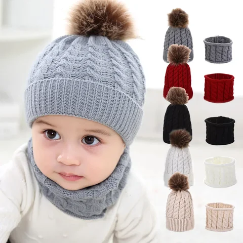 Woolen Warm Children's Hat Scarf 2 Set Autumn Winter Children's Hat Set Newborn Hat Baby Hat Warm Suit Hat Gloves 2pcs/Set