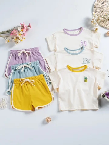Summer Infant Embroidery Set 0-4Y Cotton Short Sleeve + Casual Shorts Boys & Girls 2pcs Suit Casual Sports Set
